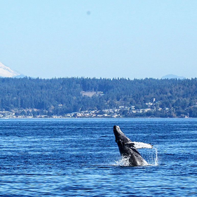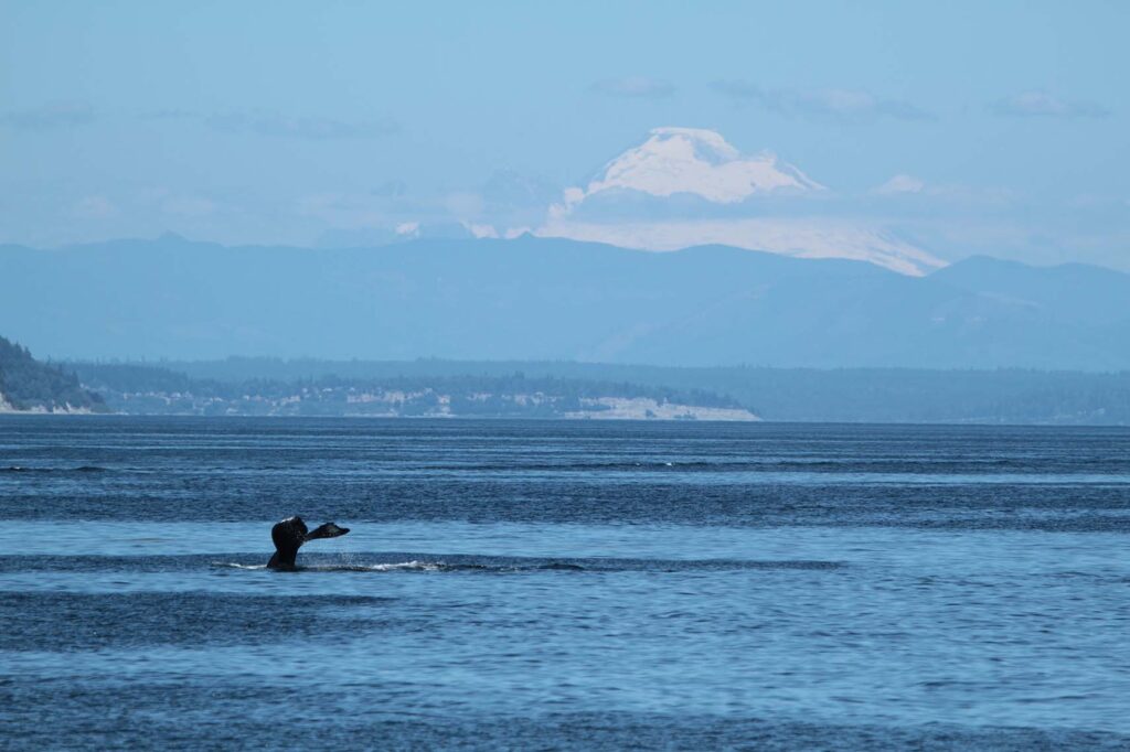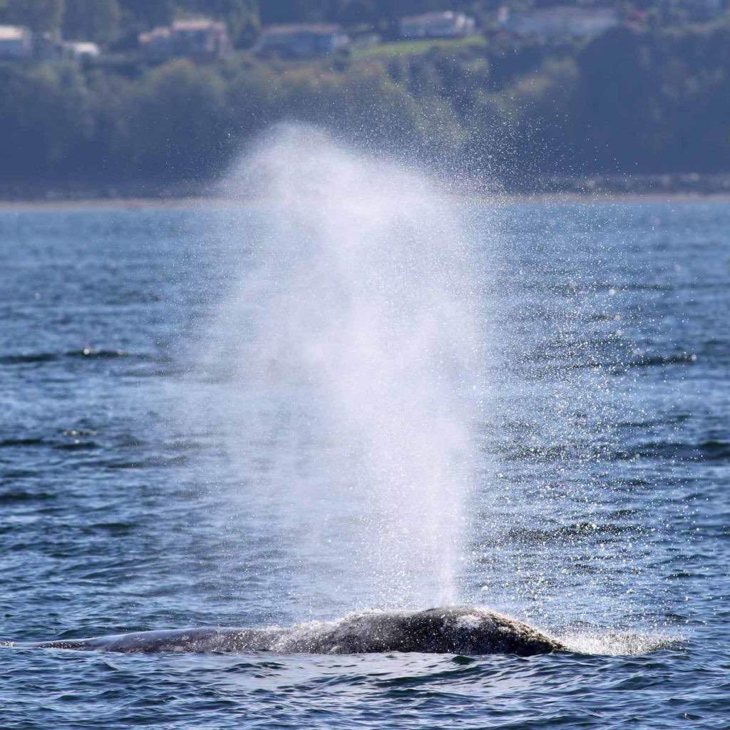 The annual gray whale migration from the Baja Peninsula to the Bering Sea is a challenging, 10,000 mile journey for these great creatures. The area around Seattle and Langley on Whidbey Island is popular with the grays due to the robust ghost shrimp population. There are a little over a dozen of these individuals who visit now, fondly referred by the locals here as the “Sounders.”